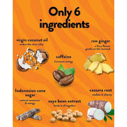 Ginger energy chews containing 33mg caffeine, crafted from raw ginger, virgin coconut oil, cassava root & cane sugar.